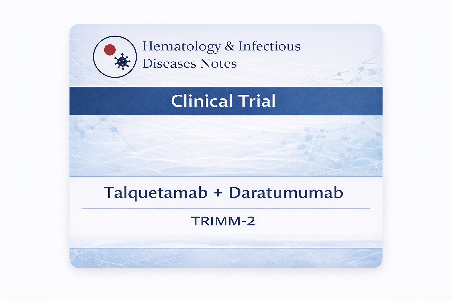Chari A, van de Donk NWCJ, Dholaria B, et al. Talquetamab plus daratumumab for the treatment of relapsed or refractory multiple myeloma in the TRIMM-2 study. Blood. 2025;146(24):2902-2913.