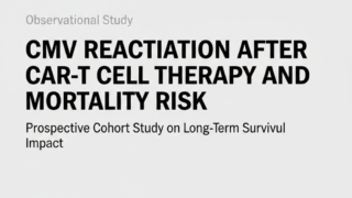 CAR-T細胞療法後のサイトメガロウイルス(CMV)再活性化が1年生存率に及ぼす潜在的な悪影響を、前向きコホート研究に基づき概説する。臓器障害がなく先制治療が行われる環境下でも、CMV再活性化が死亡リスク上昇の傾向を示す可能性を提示している。